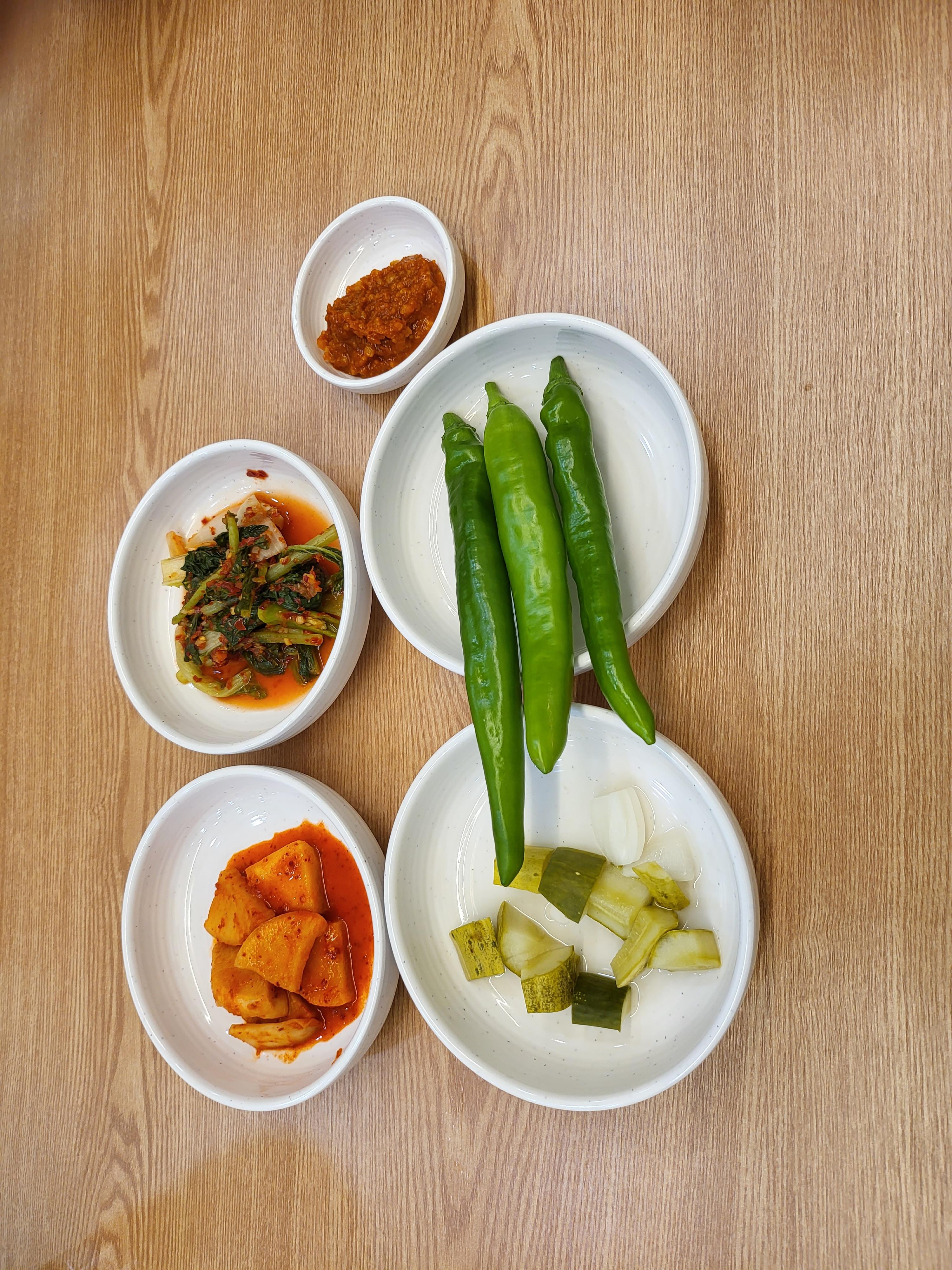 깍두기도 맛있고, 피클도 맛있고, 고추도 싱싱하고 맛있구요,