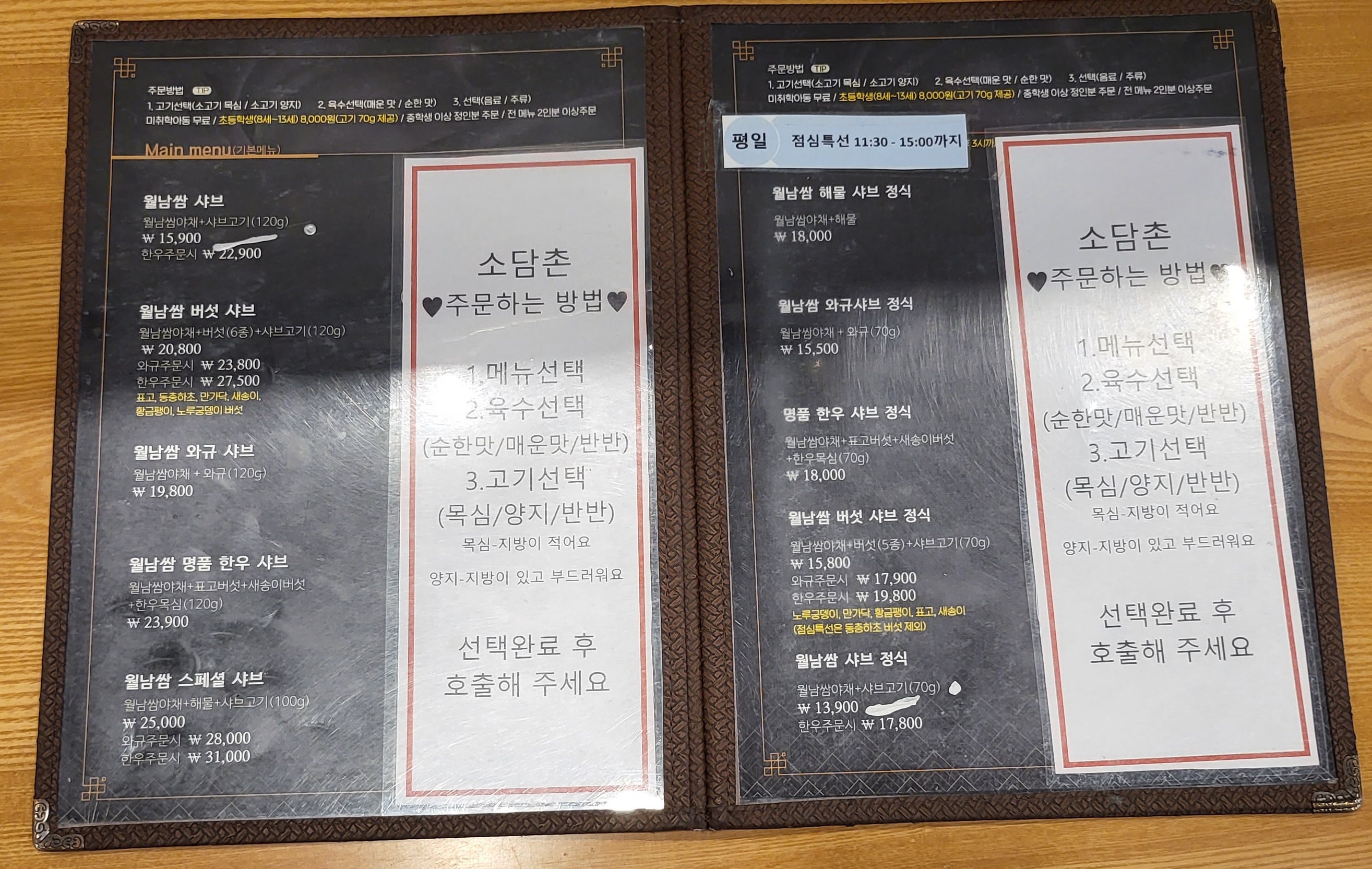 여기서 먹어본거는 월남쌈 버섯 샤브(1인 20,800과) 월남쌈 샤브(1인 15,900)