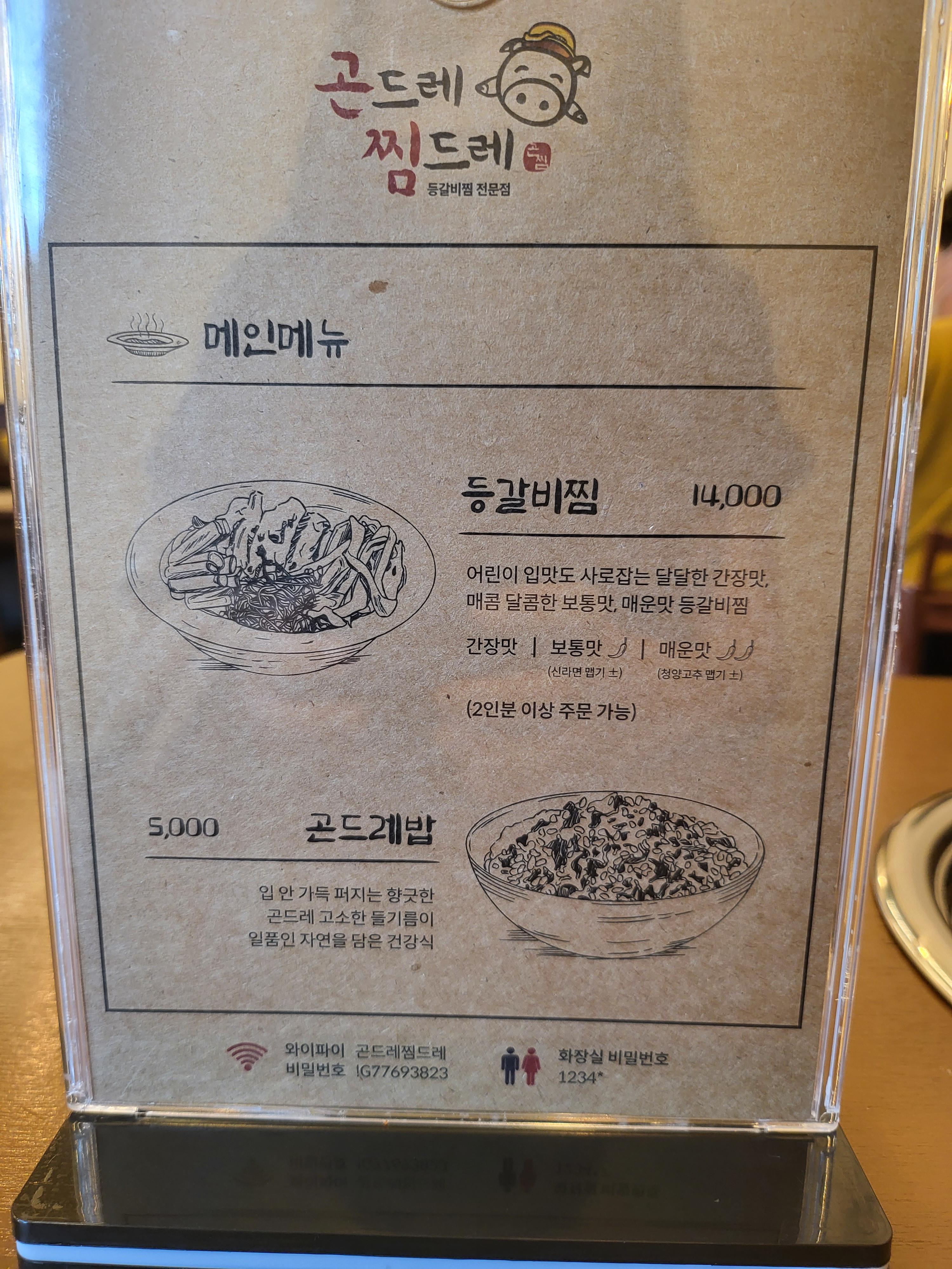 저희는 등갈비찜 매운맛2인과 곤드레밥2개를 시켰습니다,